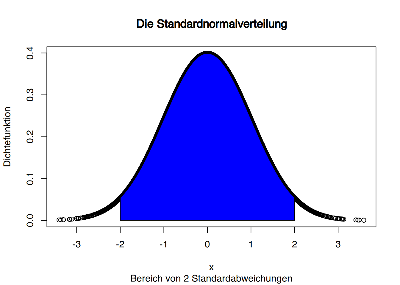 So kann ein Diagramm der Standardnormalverteilung erstellt werden, wobei beliebige Bereiche hervorgehoben werden können.