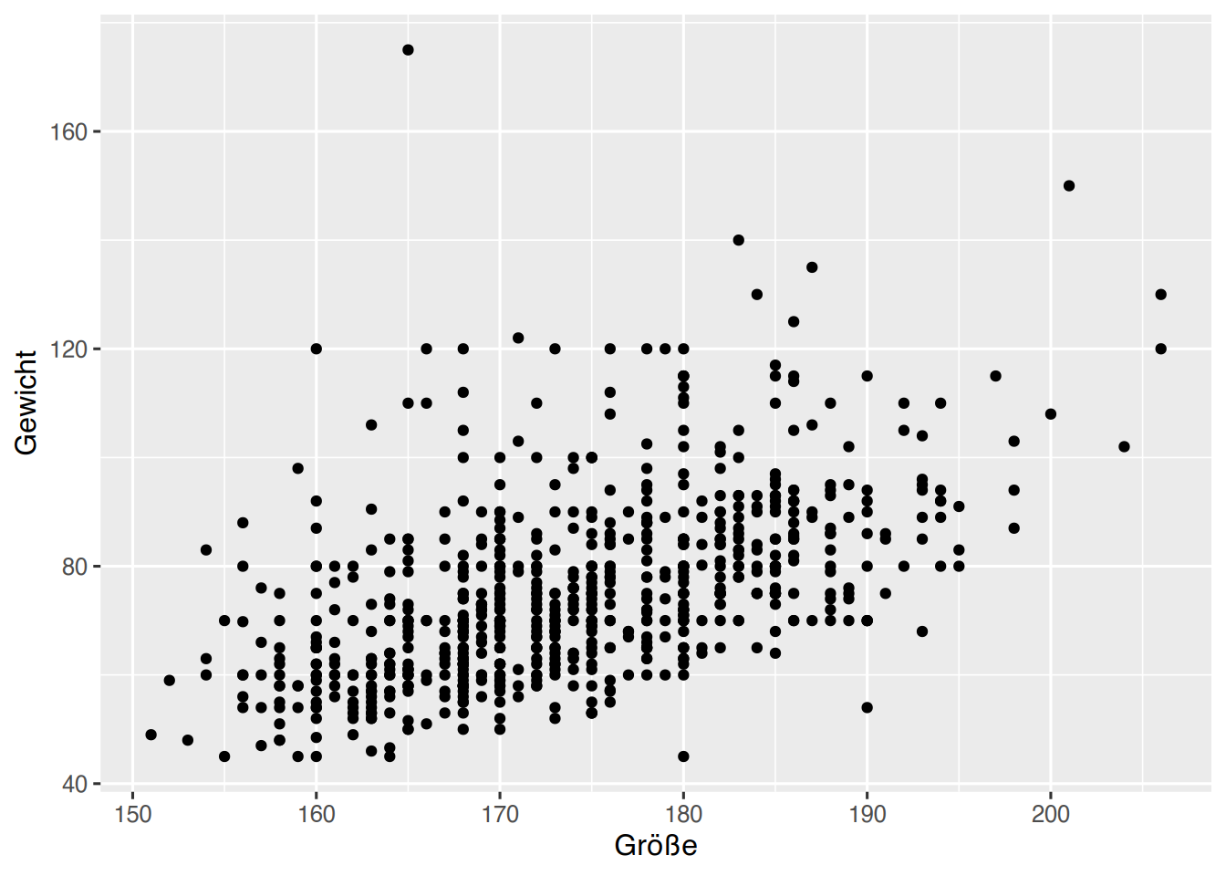 Ggplot hat die Achsen entsprechend beschriftet und die Wertebereiche anhand der vorhandenen Daten (Minimum, Maximum) ausgewählt.